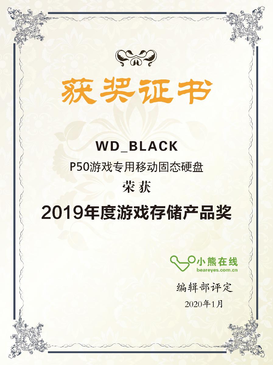 综上所述,2019年度存储类别产品,经过小熊在线编辑部一致评定,WD_BLACK P50游戏专用移动固态硬盘荣获年度游戏存储产品奖。
