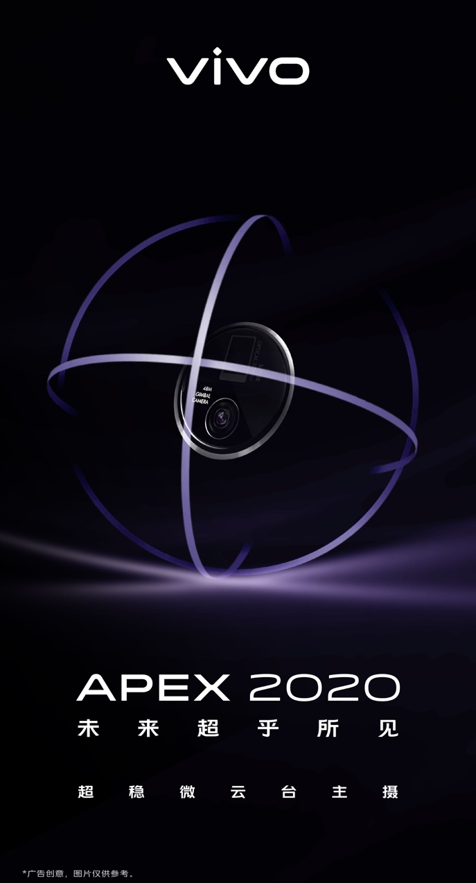 结合目前已经公布的相关消息,我们不难发现,除了延续前两代APEX概念机在一体化设计上的不断革新与探索,全新推出的APEX 2020还将着重在影像技术上发力。早在之前,爆料大神Ben Geskin就曾在Twitter平台分享了一张摄像头部分标注“48MP GIMBAL CAMERA”字样的APEX 2020渲染图,而今天最新发布的预热海报中,又出现了预示镜头可实现多角度转动的图标,及“Gimbal-stabilizing Camera-超稳微云台主摄”字样。这些都似乎印证了此前圈内人士关于APEX 2020将搭载“云台式”摄像头的预测。