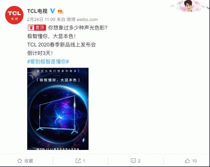 2月24日,TCL正式官宣,将于2020年2月27日14:00举办“2020春季新品线上发布会”,届时将有微博直播、B站、一直播、腾讯新闻直播平台等近30个平台进行实时的网络直播,科技迷们,千万不要错过。