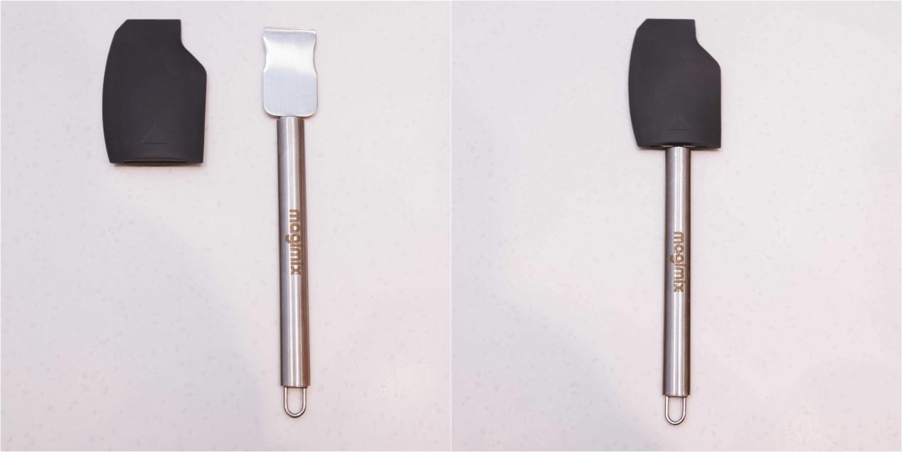 刮刀棒采用了硅胶套式的设计,可以取下,刮刀棒的顶端缺口和锅底完全贴合。