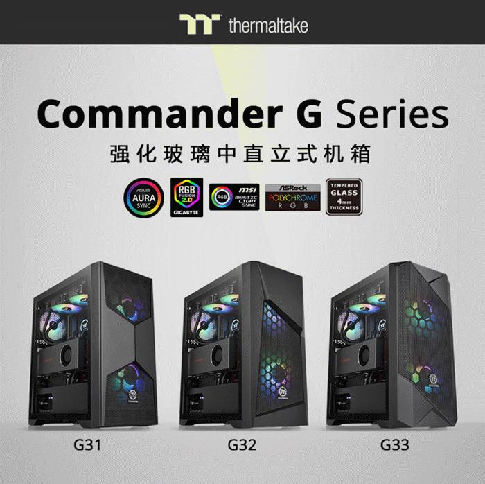 【小熊在线网 新闻报道】曜越Commander G ARGB强化玻璃中直立式机箱系列,共G31、G32及G33三种不同款式完整齐发。Commander G系列4mm厚度左侧强化玻璃 ......