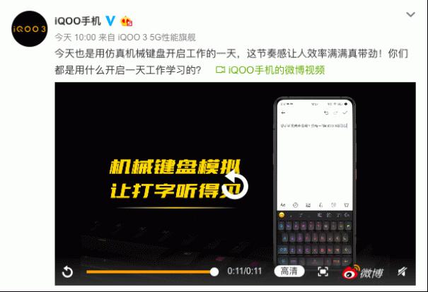 畅快输入体验 iQOO 3仿真机械键盘细腻震感全能爆发