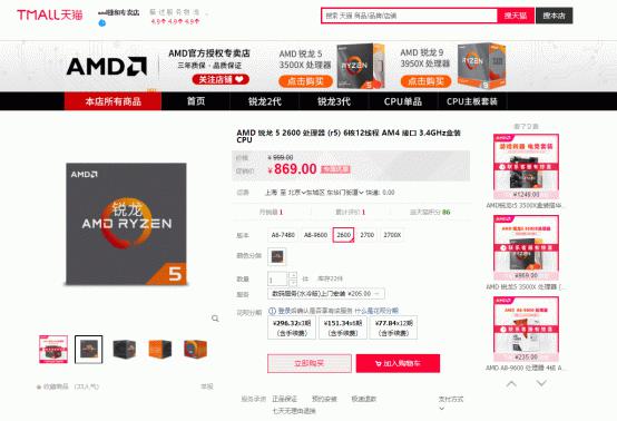 目前,这款AMD锐龙5 2600在天猫商城的售价仅为869元,不到千元的价格却有着高规格配置以及强大的性能,无疑为想组建高性价比主机的朋友提供了一个绝佳之选,您还在等什么呢,快点击文章下方链接将它带回家吧!