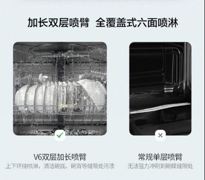 最值得这些用户喜爱的一点,是这款产品超强劲的清洗性能。产品也是创新采取不锈钢的加长双面喷臂设计,可以产生立体式无死角的喷淋效果。即使是一些很难洗的餐具,比如炒锅、碗碟底部、顽固油渍等,也能轻松清洗干净,不必为洗不干净而担忧。