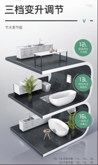 不同的用水场景,有着不一样的热负荷。华帝燃气热水器i12052配置有三档变升调节功能,能够智能切换出水量。16升可变升数有12、13、16升,相当于入手一台抵三台。一般情况下,厨房用水量相对较少,使用小升数用水量不会造成浪费;而在沐浴时或是厨房同时用水的情况下,大升数用水量则会更为充足。