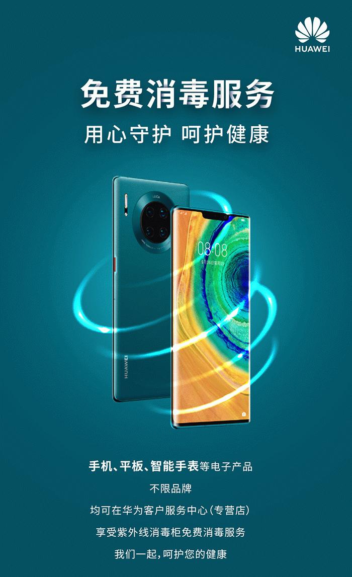华为向所有品牌产品提供免费消毒服务