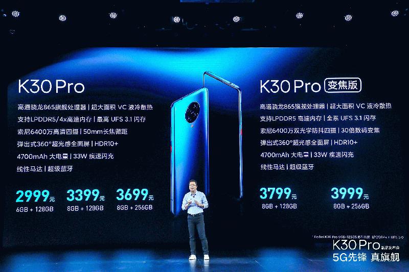 3月24日,Redmi旗舰新品线上发布会正式推出Redmi K30 Pro,作为Redmi年度旗舰,K30 Pro拥有目前市面几乎最强硬件组合:骁龙865、LPDDR5、UFS 3.1等,同时也是2020年少有的弹出式全面屏,全系标配三星AMOLED屏幕,最高支持3倍光学变焦及双OIS光学防抖。Redmi K30 Pro售价2999元起,是目前最超值的骁龙865手机,将于3月27日正式开售。