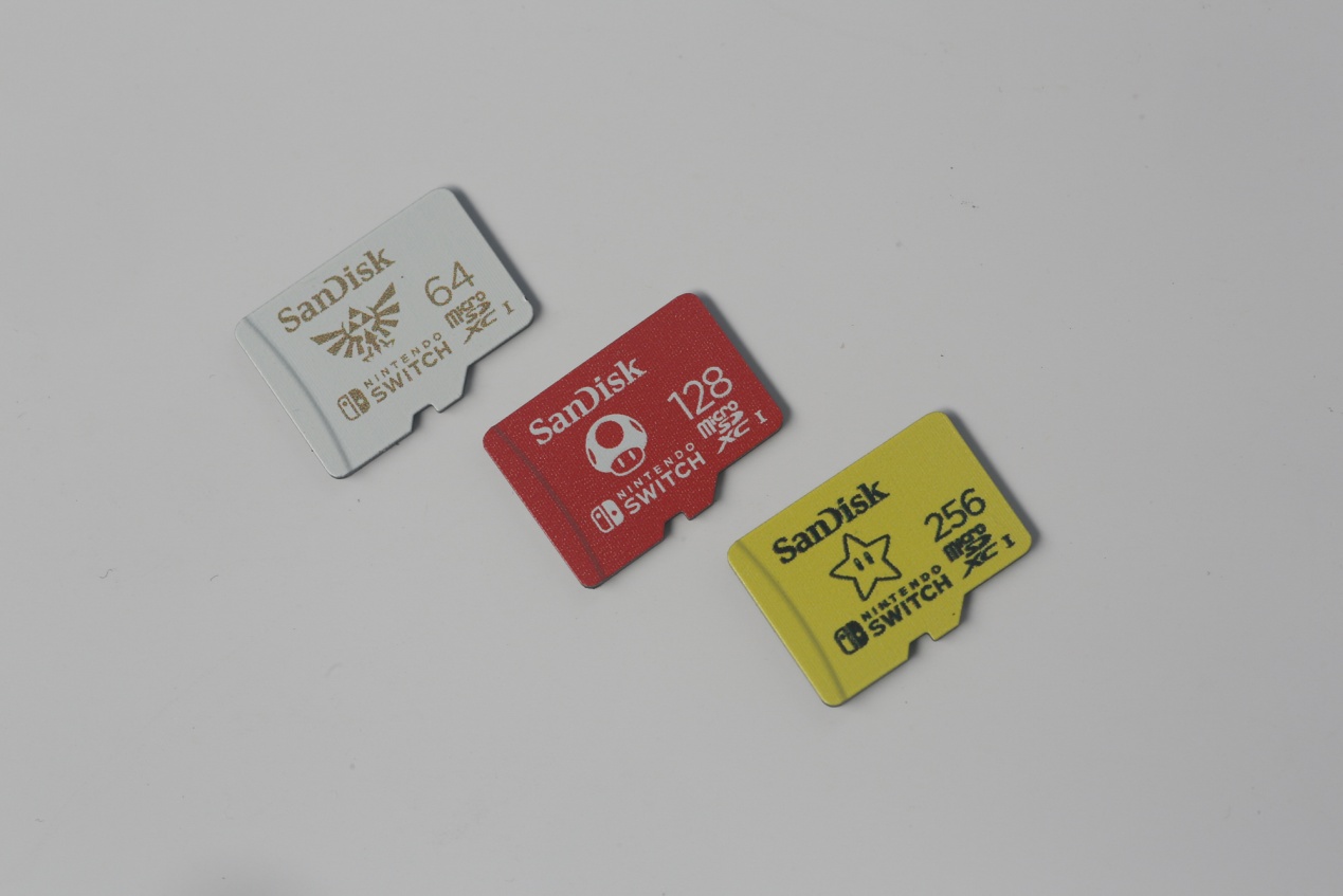 特别有意思的是,三个版本的存储卡在包装及外观上也有不同的个性定制设计,其中64GB版本采用了《塞尔达传说:旷野之息》的造型,128GB版本为《马里奥赛车》的封面,256GB使用了马里奥IP的形象,这对于游戏玩家来讲也会有一定的收藏意义。