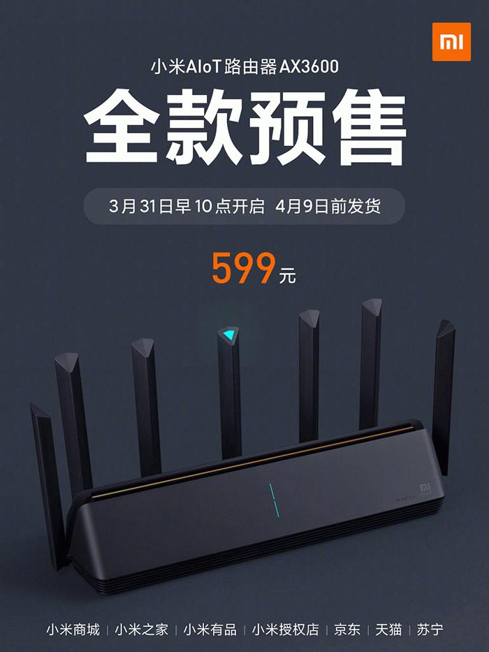 【小熊在线网 新闻报道】3月31日上午10点,小米AIoT路由器AX3600将再次开启599元全款预售,4月9日前发货,可在小米商城、小米之家、小米有品、京东、 ......