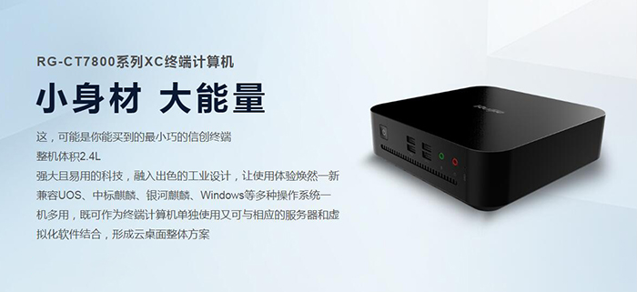 【小熊在线网 新闻报道】4月10日,锐捷网络推出RG-CT7800信息应用创新终端计算机。RG-CT7800信息应用终端计算机有着2.4L小体积;支持“平滑上云”;已与兆芯、飞腾、麒麟、统信、金山、永中、数科网维等厂商实现产品兼容互认;采用兆芯八核心处理器KX-U6780A,为2.7G主频。除了可作为PC终端独立运行,RG-CT7800还提供VDI+IDV两大云桌面模式。其中,IDV管理上云,可以对主机统一管理;PC+VDI实现的双桌面模式,则可建立安全桌面空间,满足“数据不落地”的安全要求,同时还可利用桌面空间漫游特性,支持“数据随人走”的办公场景。此外,RG-CT7800采用8层主板的RG-CT7800,所有接口均为板载接口,满足USB 3.0等高速传输。