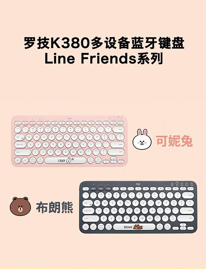 罗技K380多设备蓝牙键盘LINE FRIENDS系列也有可妮兔和布朗熊两种配色,售价249元。键盘采用轻薄设计,键盘凹面贴合指尖形状,输入时几乎没有噪音。最多可同时连接手机、平板及电脑3台设备,系统兼容Windows、Mac、Chrome OS、Android、iOS和Apple TV,只需轻按Easy-Switch键,就可完成设备间的顺畅切换。长达2年电池寿命,无需担忧电量。