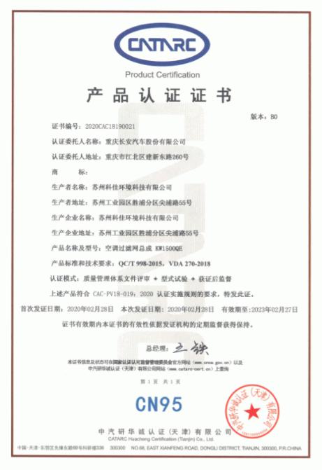 值得一提的是,2月28日,长安汽车“PM0.1高效复合抗病毒过滤器”首批通过了中汽中心权威“CN95”的认证。根据分级认证标准,车规级CN95空调滤芯须对0.3微米颗粒实现95%以上的过滤,同时对肺结核、流感嗜血杆菌、酿脓链球菌等的杀菌率达到99.99%,可以说,中汽研空调滤清器分级认证规则是行业内最严格的专业认证体系之一。此次长安汽车“PM0.1高效复合抗病毒过滤器”通过认证,更进一步树立了健康汽车新标杆。