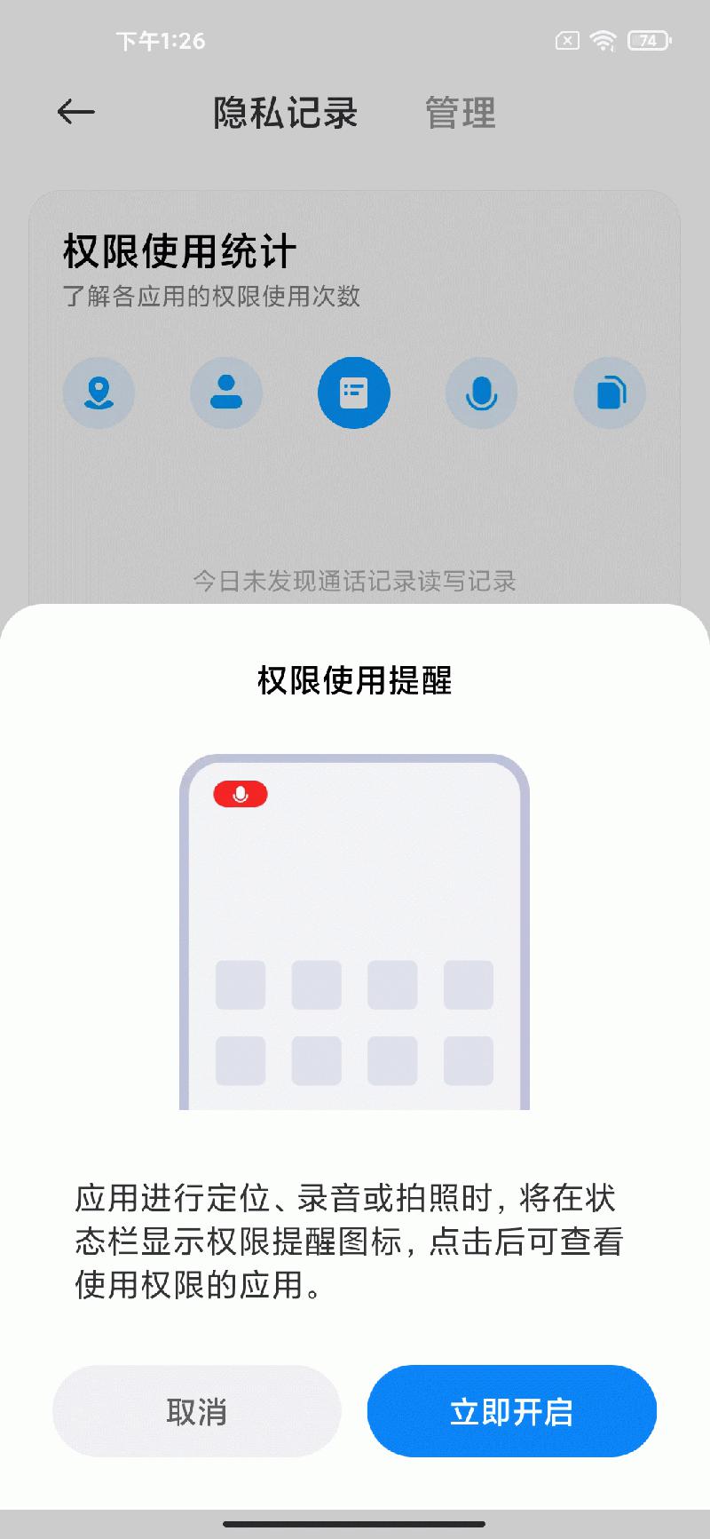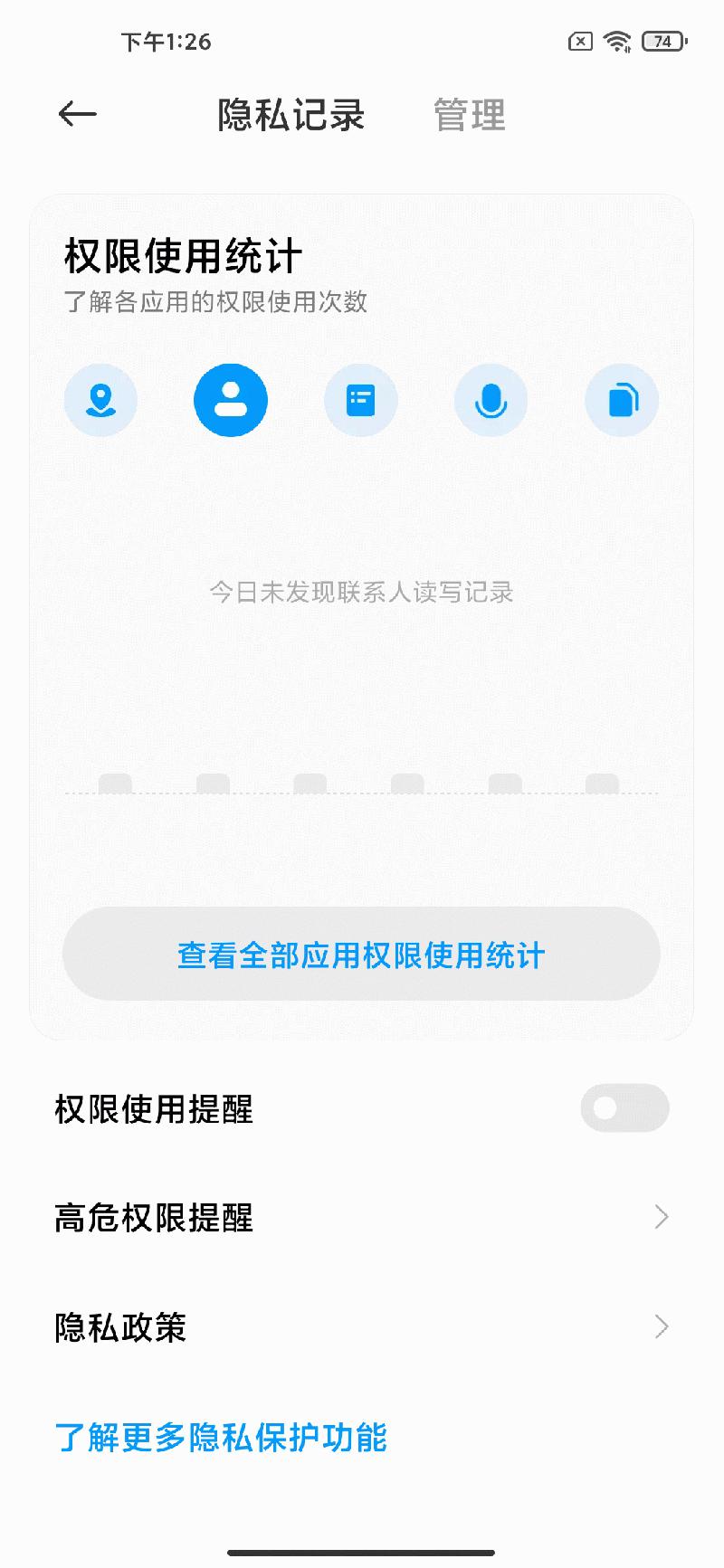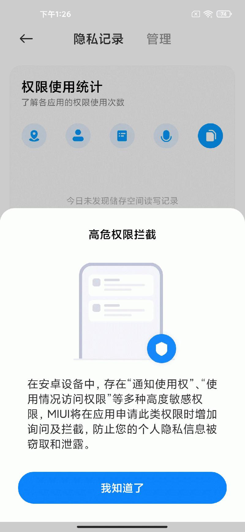 MIUI12增加了一些非常有用的隐私保护设置,比如用户可以看到应用的权限使用记录,关键隐私被提取时系统会主动提醒。