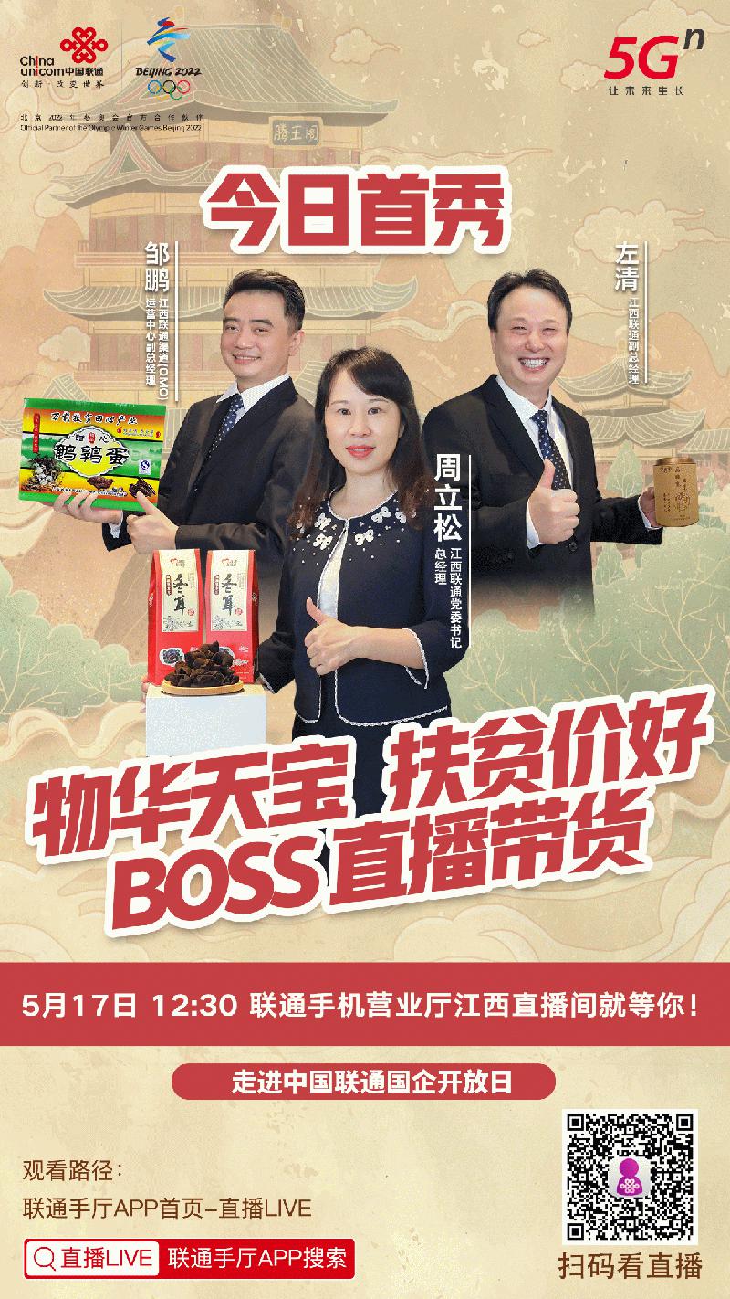 据记者了解,此次江西联通国企开放日上,周立松总经理首次亮相5G直播间,为扶贫带货,有赣州龙归村白茶、吉安长乐村冬耳和宜春田心村鹌鹑蛋等江西特产现身直播间,吸引了上万江西消费者的围观。同时,在直播间内还推出了多样化的5G智能泛终端,送出百万话费红包、海量流量红包、VIVO S6 5G手机等优惠福利。