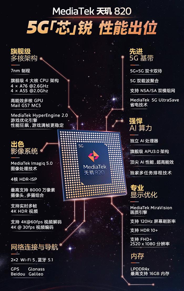 MediaTek发布天玑820 5G性能出位