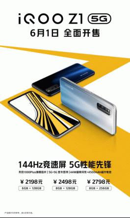 5G性能先锋iQOOZ1于6月1日全面开售,售价2198元起 年轻用户5G购机新选择