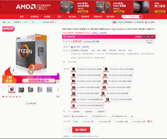 组建入门级主机必备 自带核显的4核神U AMD锐龙3 3200G京东热卖