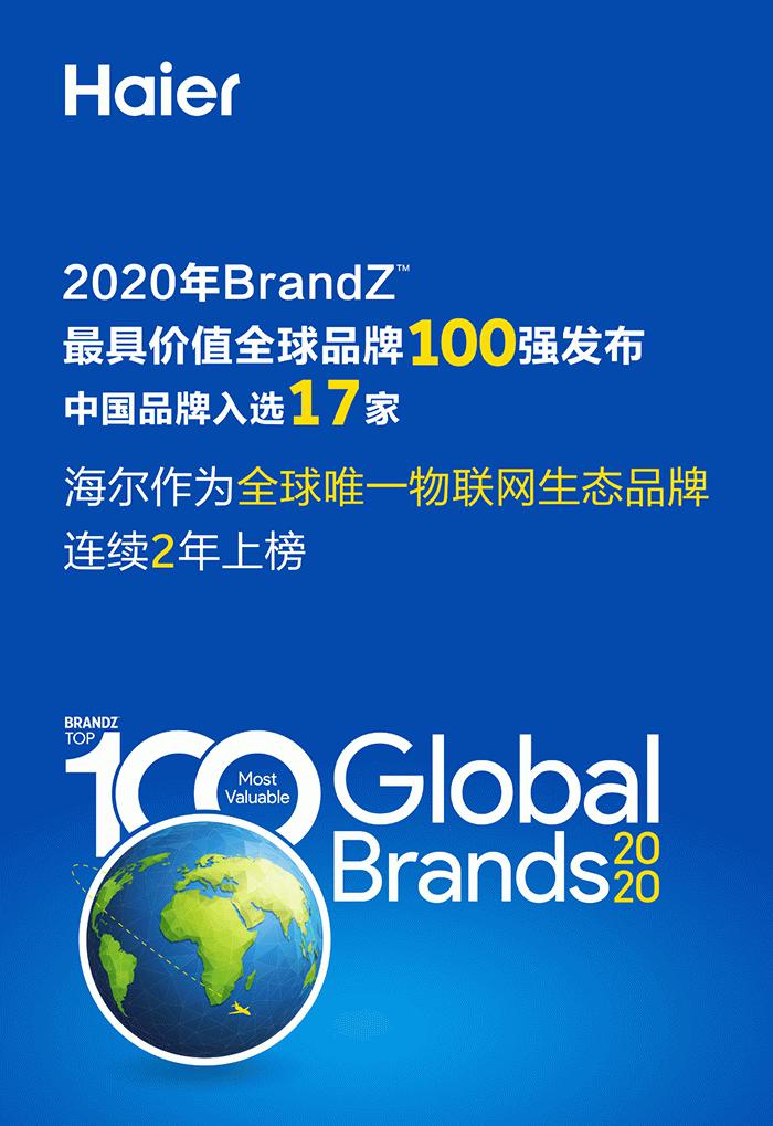 海尔蝉联2020年BrandZ最具价值全球品牌百强