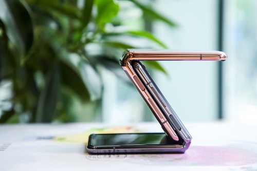 除了迷雾金,三星Galaxy Z Flip 5G还提供冷山灰配色供消费者选择。除了配色之外,这款手机的外观形态更值得关注的,三星Galaxy Z Flip 5G是一款可以上下折叠的手机。在折叠合起之后,这款手机只有化妆镜的大小,如此新潮别致的外观形态,只能说在当下的手机市场,绝对任由它“乘风破浪”。绝美的配色加上娇小的体积,好看的同时还让手机的便携性得到了提升,在日常使用中,将其放在小的背包或衣服口袋中也都十分方便,拿出来时,还能收获周围人或感叹或好奇的目光。
