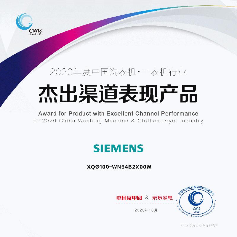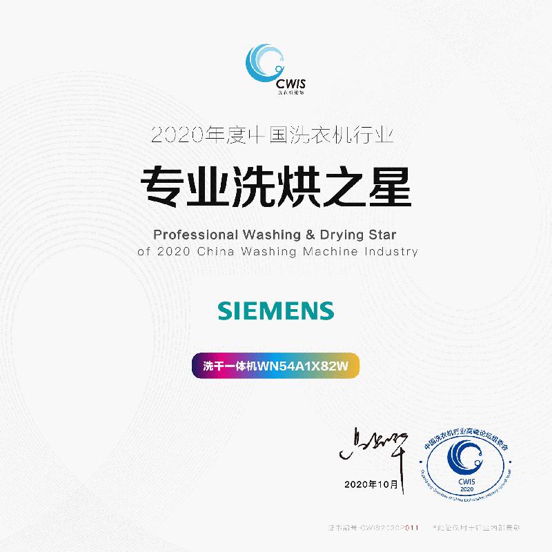 西门子家电也在此次论坛中斩获多项产品、渠道奖。获得“2020年度中国洗衣机行业专业洗烘之星”的西门子洗干一体机WN54A1X82W拥有10kg洗、7kg烘的超大洗烘容量,能够一次性满足全家人的洗烘除菌需求。其搭载的三项创新技术在洁净衣物的同时,还能实现对衣物的全面护理:热风清新功能
