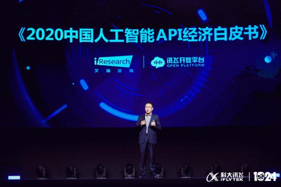 科大讯飞高级副总裁、消费者事业群总裁胡国平现场首先公布了讯飞开放平台联合艾瑞咨询共同发布的《2020中国人工智能API经济白皮书》,通过洞察API技术历史演变、商业价值与市场规模现状,聚焦中国人工智能API经济发展与趋势,主要提出以下观点: