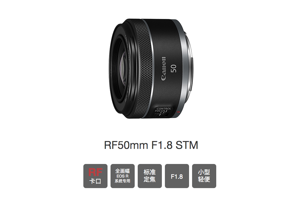 11月4日,佳能(中国)推出EOS R系统大光圈标准定焦镜头RF50mm F1.8 STM。