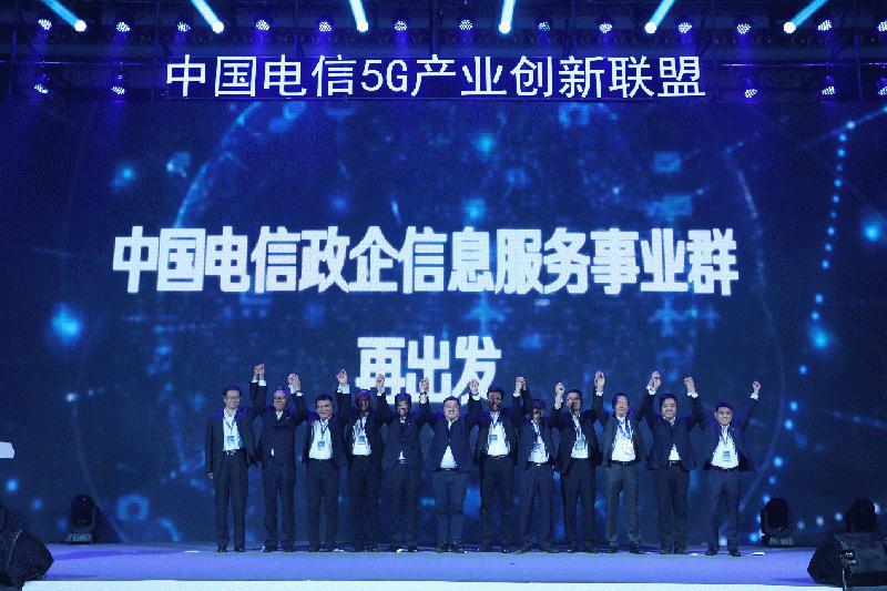 论坛上,中国电信政企十大行业事业部正式亮相,中国电信集团政企信息服务事业群总经理与十大行业事业部总裁宣布中国电信产业数字化服务升级“再出发”。