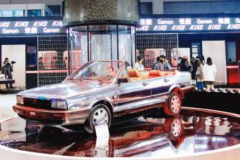 佳能展台内,多种艺术潮拍互动装置吸引大量观众排队体验。一辆以赛博朋克感的复古轿车为背景,由32台EOS 200 DII组成180度子弹时间的环拍区,引来了现场观众纷纷驻足打卡,环形相机阵将高速连拍照片串联,生成环绕式3D视频,搭配潮感十足视频外框,吸引了众多观众体验,32台相机均贴有创意涂鸦贴纸让装置区本身也成为全场吸睛亮点。