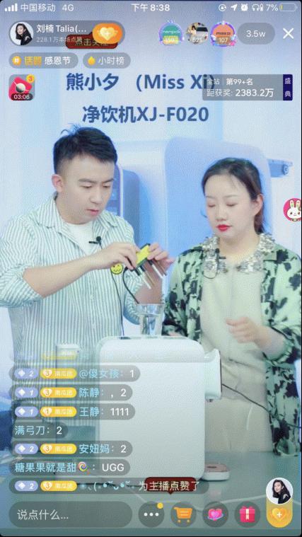 净化加热一体机 Miss Xi熊小夕净饮机刘楠直播间都为它打Call