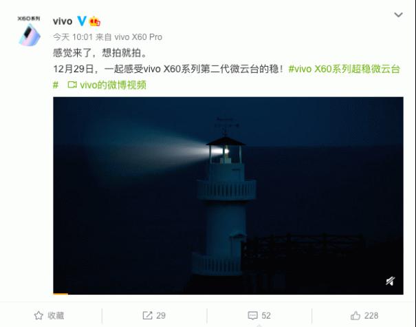 今天,vivo官方微博发布了X60系列第二代微云台的宣传视频。视频从恐高、笑场、滑板、跑动等典型生活场景举例,定义了“抖动是拍照的天敌”。而vivo X60系列搭载的第二代微云台技术可以很好的化解拍照时的抖动带来照片模糊的问题,可以很好的“稳住”生活中的常见场景,拍照更加清晰,大大提高出片率。视频最后,还邀请大家一起在12月29日见证“微云台的稳”,再次强调了vivo X60系列新品发布会的日期,将用户的期待值推向高潮。