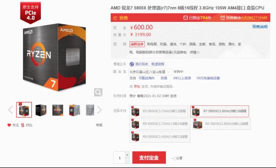 纵横夜之城必备 AMD锐龙7 5800X京东预约抢购
