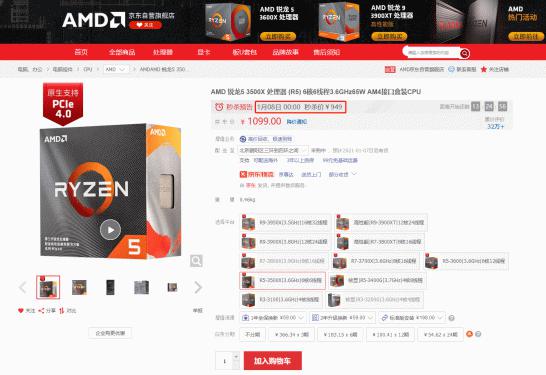 AMD锐龙5 3500X在京东的日常售价为1099元,但是即将到来一波限时秒杀,只要949元,这个价格是这款CPU近期的最低价格了,一直观望的游戏玩家一定要抓住这次秒杀机会!一项项先进技术的应用,搭配AMD一贯以来坚持的超高性价比,让这款AMD锐龙5 3500X重新定义了千元级处理器的性能标准,因此如果您也想体验先进科技带来的强大性能,就快点击文章下方链接将它带回家吧!