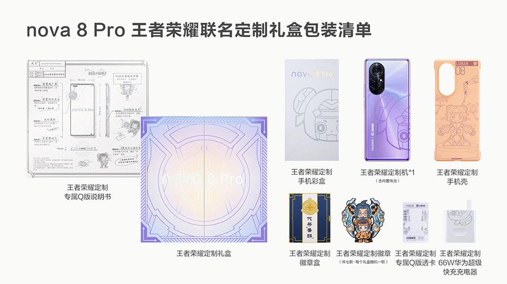 1月12日,华为商城正式官宣,华为与《王者荣耀》联名推出的nova 8 Pro“鲁班8号”定制款将于1月13日零点开启首销,8GB+128GB版本,售价3999元。定制礼盒中除手机外,还包括《王者荣耀》定制手机壳、定制66W快充充电器及多种《王者荣耀》定制周边。