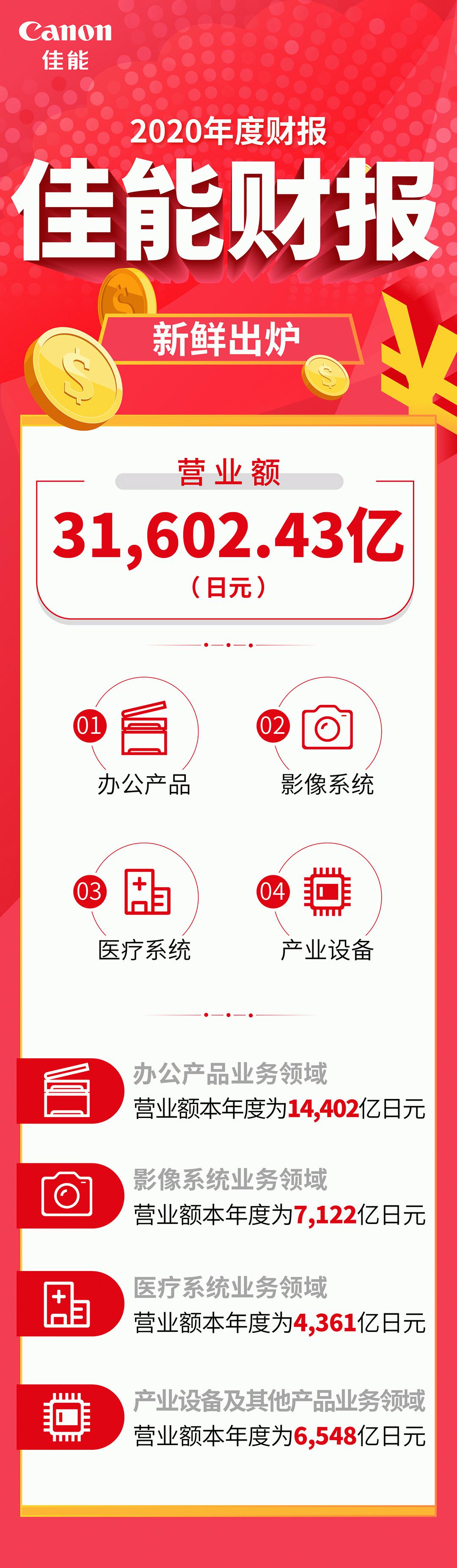 1月28日,佳能集团发布了2020年度财报。财报显示,2020年佳能集团营业额为31,602.43亿日元,同比降低12.1%。其中,下半年随着全画幅专微相机EOS R5和EOS R6的强势推出,带动了可换镜数码相机销售的回暖。同时,在新冠疫情时期,发达国家和中国等地居家办公和学习的需求增加,新兴国家的需求也逐渐恢复,使喷墨打印机需求量大幅上升,销售台数对比去年实现大幅增长。此外,随着网络摄像机的多元化应用不断拓展,市场规模持续扩大,销售实现增长。在半导体曝光设备领域,针对数据存储业务的投资表现抢眼,销售台数大幅增加,且OLED面板制造设备销售也有所增长。