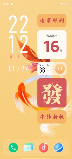 基于用户交互优先的原则,此次OriginOS新春版中的原子组件迎来了新伙伴,贴纸。用户可以将自己对新年的期许、愿望等美好祝福全部放在贴纸上进行展示。甚至,用户还可以凭借自己的想象力和创造力,利用不同的贴纸组件,包括打卡、倒计时、祝福等,在桌面DIY一副专属的新春对联,彰显个性。