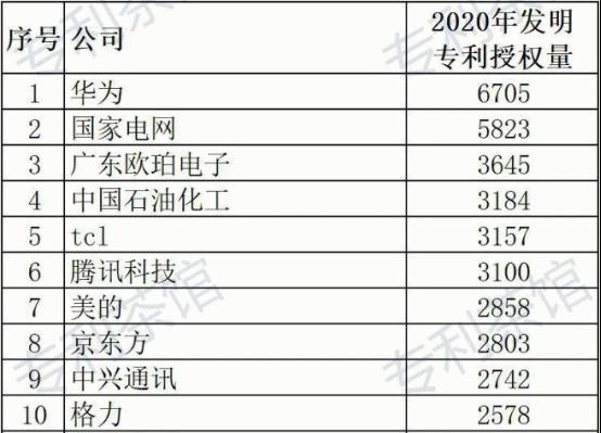 值得注意的是,“2020年国内企业发明专利授权量”排行榜前十榜单中,家电品牌入榜的仅有三家,TCL位列第一。