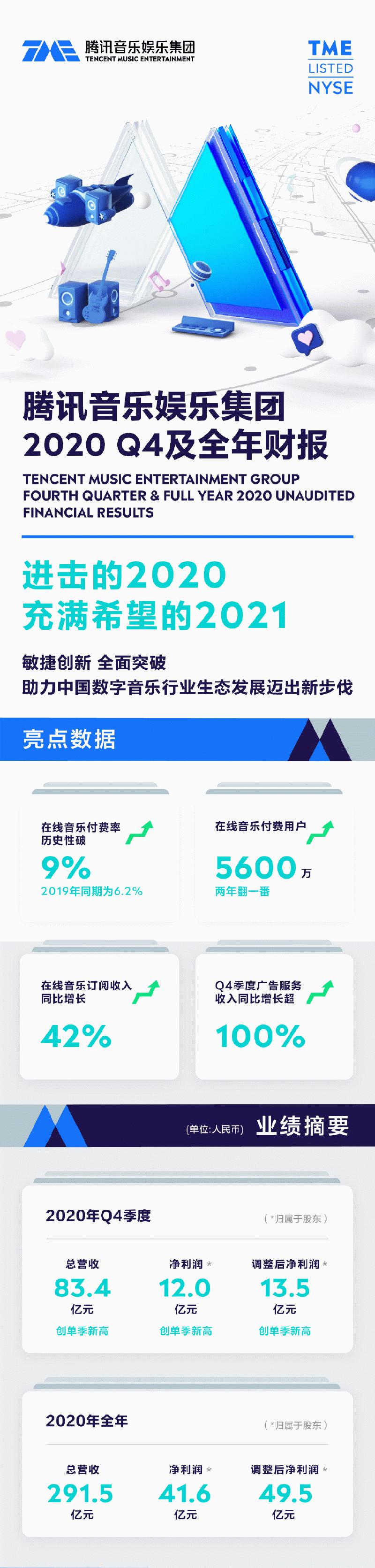 腾讯音乐2020全年净利润41.6亿元 同比增长4.3% ......