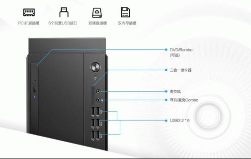 联想启天M540商用台式机提供了丰富的扩展接口,6个USB 3.2接口,包括4个接口带宽为5Gbps的USB 3.2 Gen 1,2个接口带宽为10Gbps的USB 3.2 Gen 2接口,在日常使用中,完全能够满足用户的使用需求。后置接口同样丰富,USB、HDMI、VGA和串口,不仅可以满足多屏拓展需求,还可以连接串口打印机,各类工控、电路调试设备。