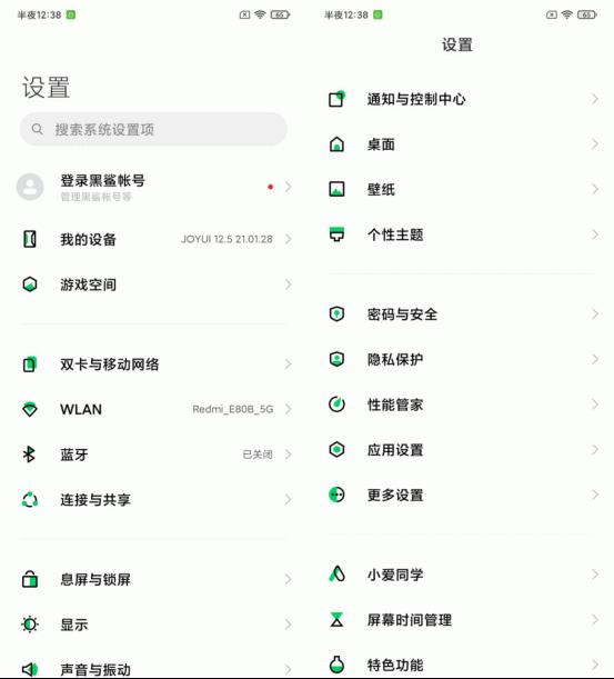 JOYUI12.5 操作系统充分继承 MIUI12.5 的大部分功能,光锥动效美学、通感可视化设计、