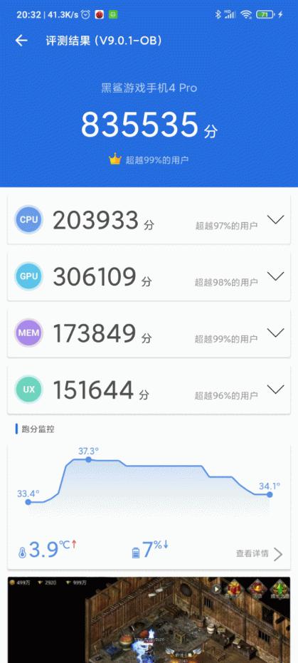 下面让我们来看下手中这台12GB+256GB的黑鲨4 Pro的跑分成绩吧。