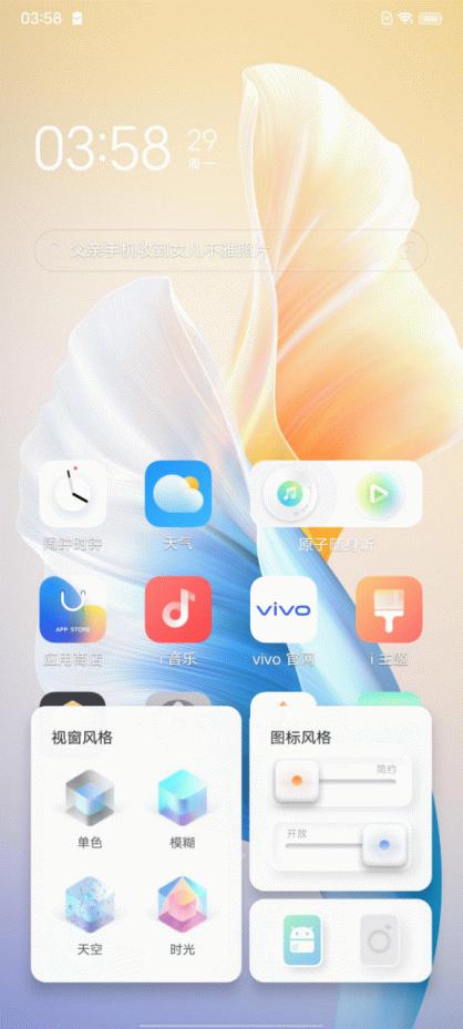 在交互方面,OriginOS打造出了原子组件,通过原子组件在桌面就能获取到关键信息、实现一系列核心操作等。比如通过桌面的原子随身听可以快速切换听歌APP、音乐等。通过桌面镜头包图标可以直接打开超广角、人像模式等,更便捷。