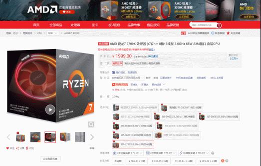 AMD锐龙7 3700X处理器采用了7nm制程工艺,Zen2核心架构和8核心16线程的高规配置,高达3.6GHz的主频和36MB的游戏高速缓存,而TDP仅为65W,可以说是高性能低功耗产品的代表了。