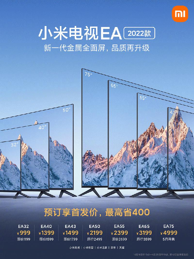 小米电视EA 2022款发布 七大尺寸 999元起 ......