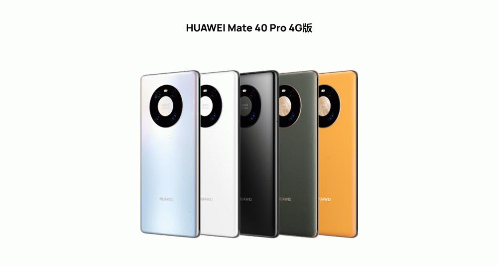 4月23日,华为Mate 40 Pro 4G官网上架,支持移动、联通、电信三大运营商的4G网络。提供秘银色、釉白色、亮黑色、夏日胡杨、秋日胡杨。采用6.76英寸OLED全面屏,分辨率2772×1344,1670万色,DCI-P3广色域,最高支持90 Hz刷新率、240 Hz触控采样率。搭载麒麟9000处理器,八核CPU,24核Mali-G78,双大核NPU+微核NPU (神经网络处理单元)。配备8GB内存,最高512GB存储。后置5000万超感知主摄、2000万电影镜头、1200万长焦镜头,电池为4400mAh。前置1300万像素超感知摄像头。支持66W有线、50W无线闪充,IP68级防尘抗水。