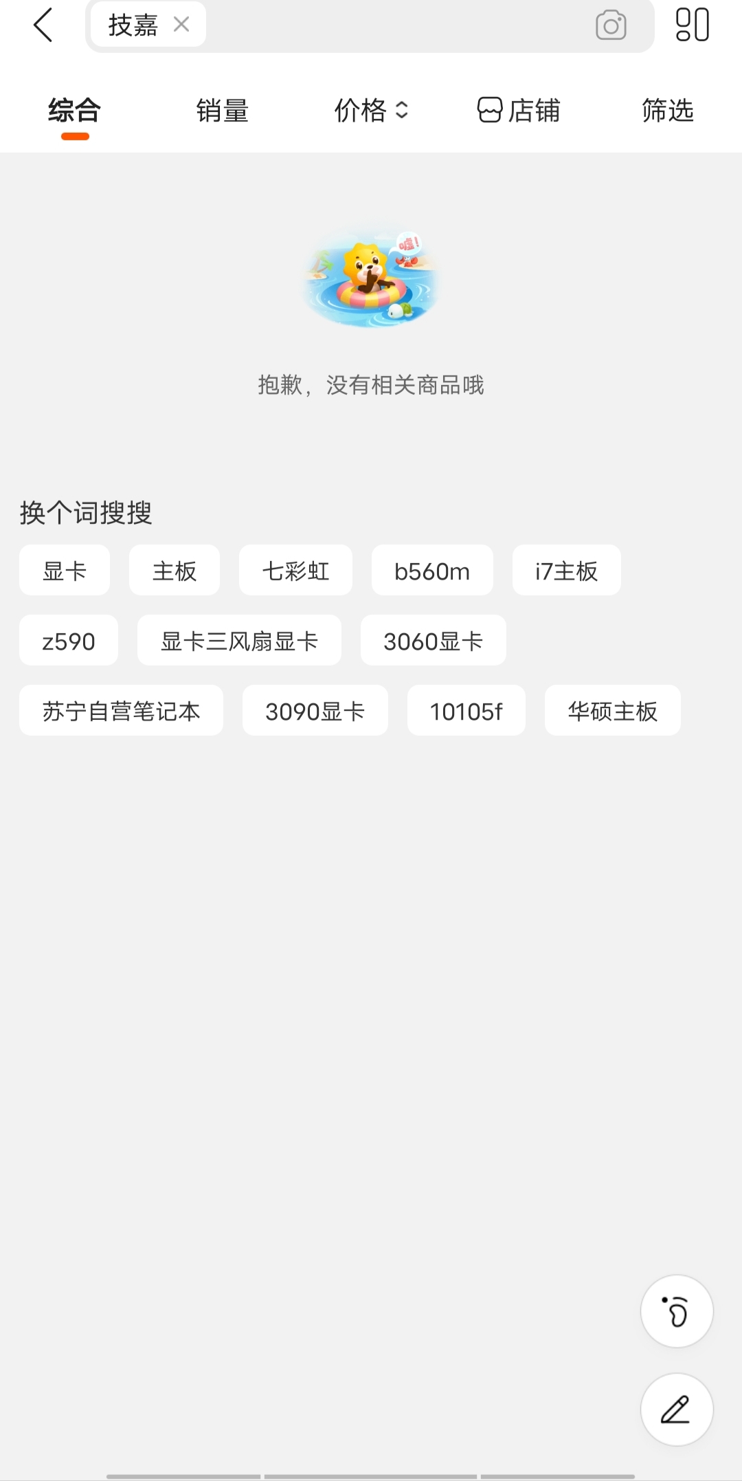 小熊在线讯 5月11日,今天登陆苏宁易购,看到技嘉相关显示页显示抱歉,没有相关商品。