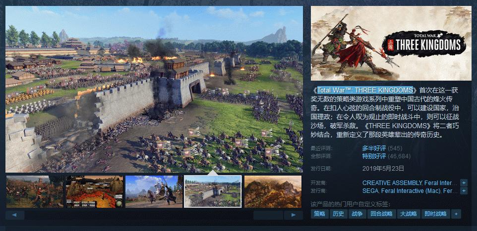 《全面战争:三国》是由Creative Assembly开发并由世嘉发行的一款大型即时战略游戏,也是《全面战争》系列的最新作品。这款作品上架以来收获了无数好评,以三国为背景的游戏总是能引起国内玩家的强烈共鸣。刚好近期在Steam平台上,这款游戏进行了促销,让很多之前没有第一时间入手的玩家们有了体验的时机,这中华大地的天命,将由玩家们亲手缔造。