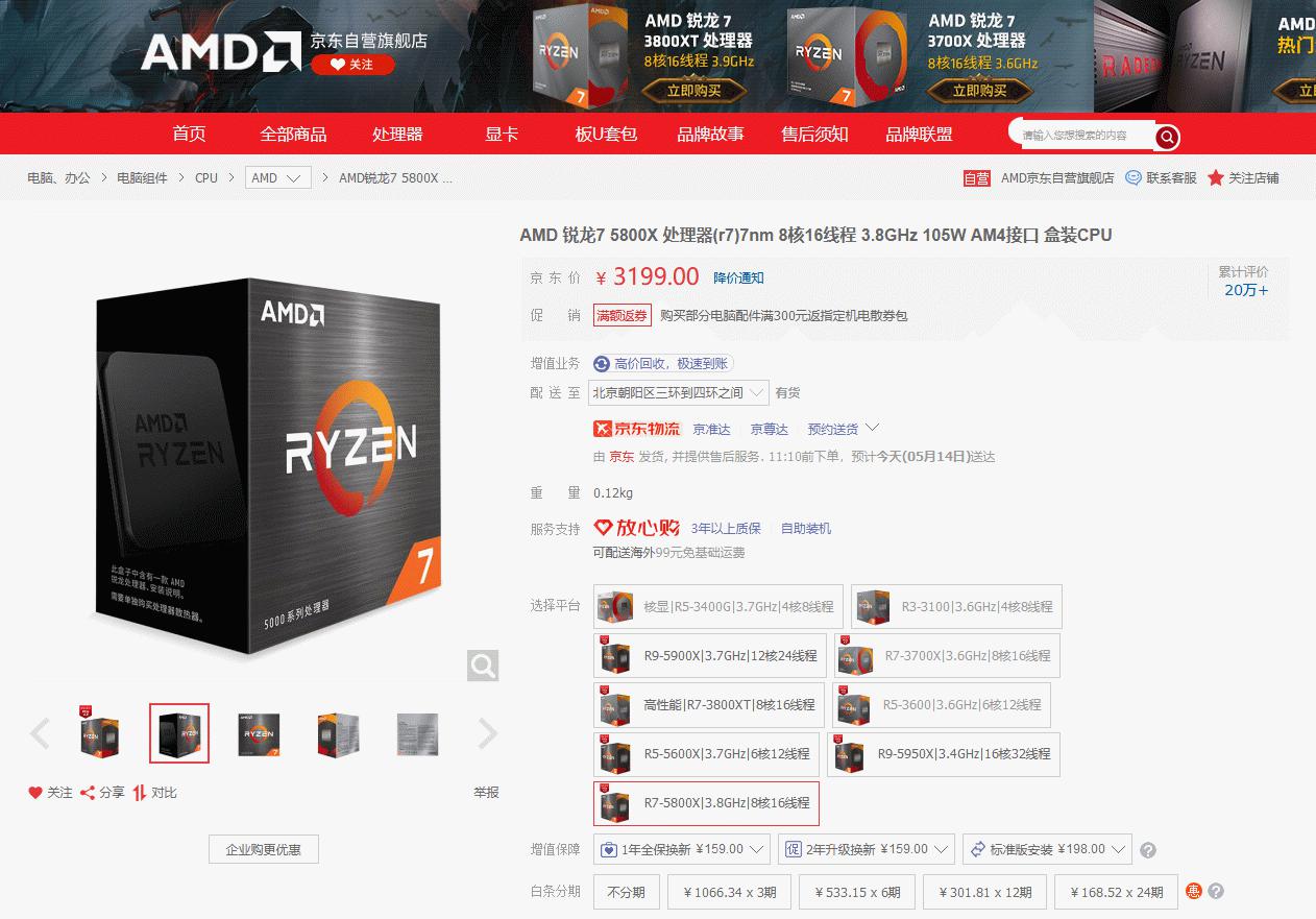 目前,AMD锐龙7 5800X处理器在京东商城自营旗舰店的售价为3199元,同时白条六期免息限时优惠中,是入手的最佳时期。想投身于《全面战争:三国》世界中的玩家朋友赶快前往下方链接抢购吧。