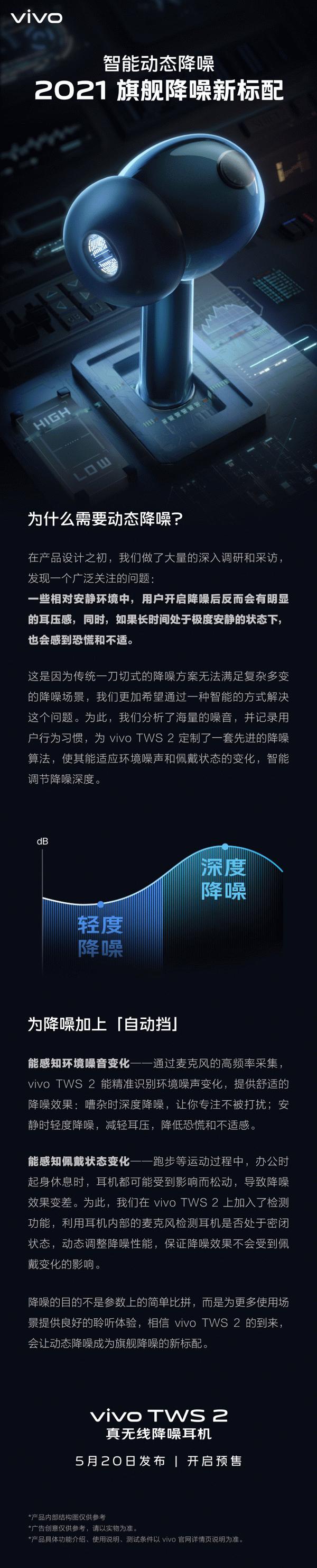 2021旗舰降噪标配 vivo TWS 2搭载智能动态降噪技术