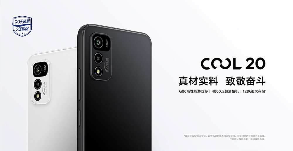 5月25日,"浴火重生,王者归来"的酷派COOL 20正式发布,提供4+64GB、4+128GB、6+128GB三种配置,售价分别为699元、899元、1099元。酷派COOL 20机身三围164×76×厚8.65mm,重约200g,有伯爵黑、秘海蓝、可可白三种配色。采用6.52英寸720P分辨率LCD水滴屏,玻璃机身,支持生活防泼溅,所有端口定制密封设计。搭载联发科G80处理器,不支持5G。专为游戏优化的MediaTek HyperEngine游戏引擎,可根据游戏场景对CPU、GPU、内存资源进行再分配,提高激烈游戏画面下的流畅度并提升续航表现。后置4800万像素超清主摄,配虹软算法,支持夜景模式、HDR 模式、人像模式等。支持90天换机,2年质保。