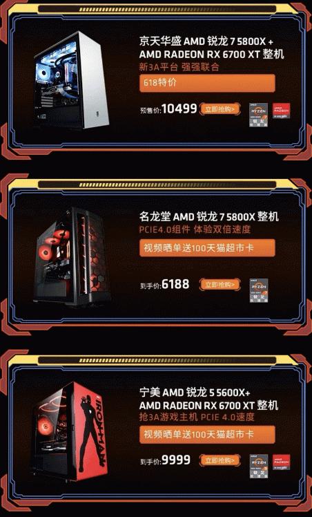 随着六月份的到来,最为火热的年中大促现已正式开启了。各大DIY硬件厂商都在电商开展了各种各样的活动,作为全球知名芯片厂商AMD(超威)就在京东自营旗舰店和天猫官方旗舰店开展了一系列回馈粉丝的促销,尤其是整机类型的产品今年参与的型号非常多,这也得益于AMD和品牌装机商的合作越来越深入。下面就为广大DIY玩家介绍一下两个旗舰店的重点活动。